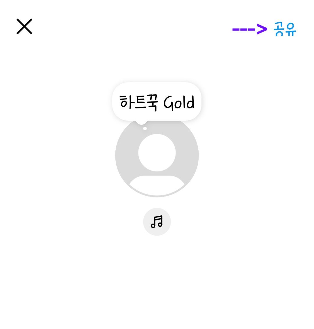 2. 메모 작성하기: 메인 화면에서 화면 상단의 '+' 버튼을 클릭하여 Gold 앞에 하고 싶은말을 작성하고 공유 누릅니다.